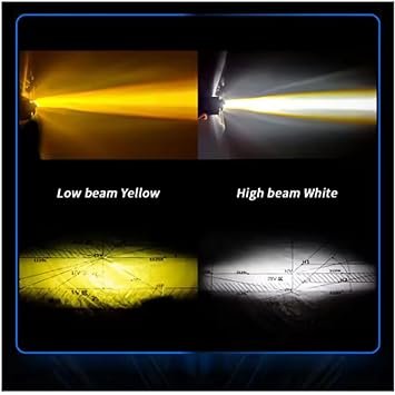 - Dual-Mode Lighting: Switch between bright white light for clear nights and yellow filter for improved penetration in fog, rain, or dust.